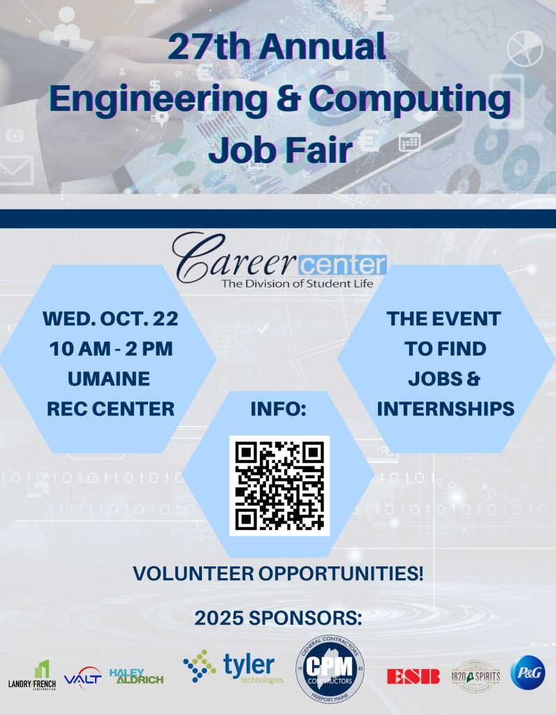 The UMaine Career Center offers a range of dynamic opportunities for employers to engage with students across all academic disciplines. Whether you’re looking to build your brand on campus, fill internship or full-time roles, or participate in targeted recruitment events, we provide flexible and effective ways to connect with our talented student body. From career fairs and industry-specific networking events to on-campus interviews and information sessions, we’re here to help you meet your workforce needs while supporting the career development of UMaine students.