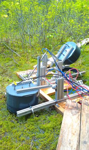 Instruments and computer in shed at West Tower